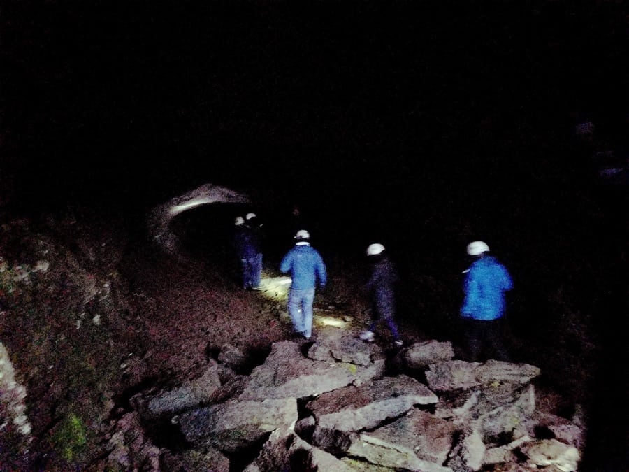 Another day landed the gals in the Volcanic Veins: that is, CAVES, outside of Reykjavik. Debra suffers from claustrophobia and this excursion would put her to the test. The bus driver from Extreme Iceland customized their route to pick the gals up at Eyja hotel. Along the way, the Extreme Island shuttle picked up 10 other aspiring troglodytes from various places around Reykjavik. The mood on the bus was one of excitement as the guide shared his knowledge of caving, lava fields, and landmarks along the route. The snowy mountain tops and volcanic formations made for another otherworldly view on the approach to the cave. Inside, a lamb’s bones are preserved in this 50º F tomb. Backs arched, the girls inched through the vertically challenged space seeing stalagmites and eerie formations that only happen in isolation chambers like this.