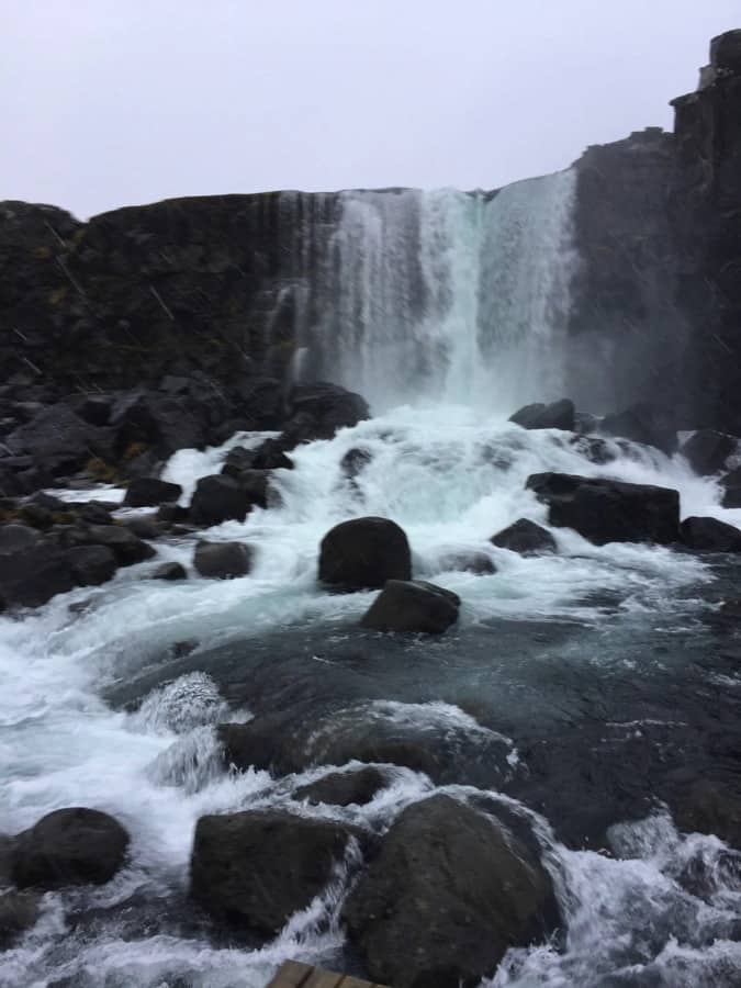 The surreal sights and sounds of the rushing waterfalls were magnificent, and like nothing the girls had ever seen before. Reaching over the rocky cliffs near the rushing water, Debra filled a cup of this sweet Icelandic water and sipped it like the Nordic blessing it was.