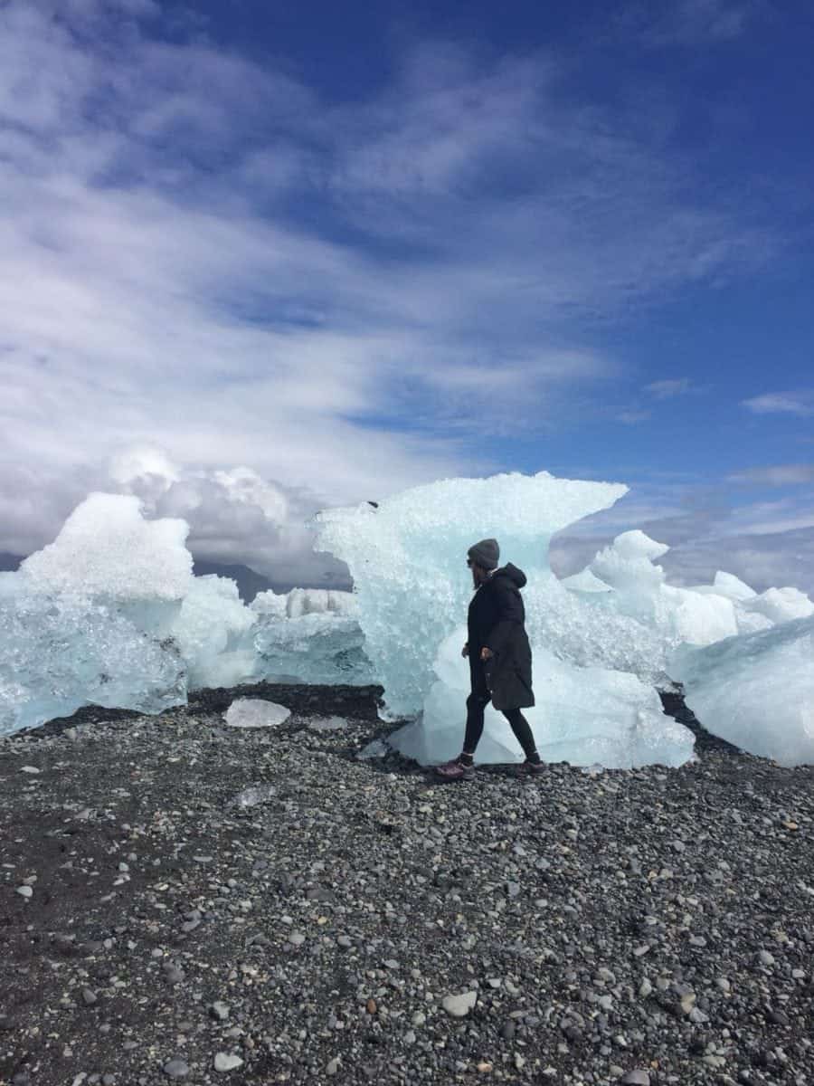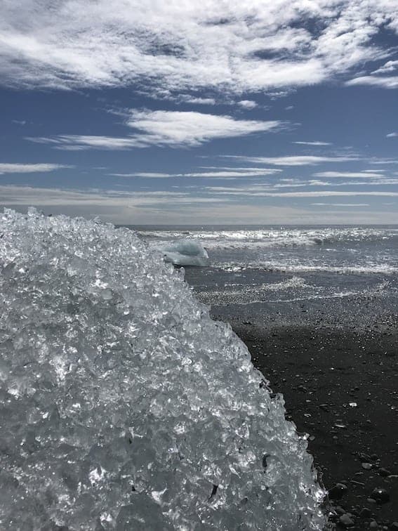 The next day called for a Zodiac boat tour through the Glacier Lagoon at Jökulsárlón – what mind-blowing experience! Once we put on our floating suits we got very close to the glacier and our guide provided us with interesting information about the ice in the lagoon. It was amazing to sail around wild seals and the gigantic chunks of ice that constantly break from the big glacier tongue – though a warning sign of global warming! However, it’s a natural spectacle to see this happening with your own eyes. The Diamond Beach is located just by the lagoon – an enormous scenery where you can walk in between the ice chunks, climb on them and enjoy their multifaceted beauty.