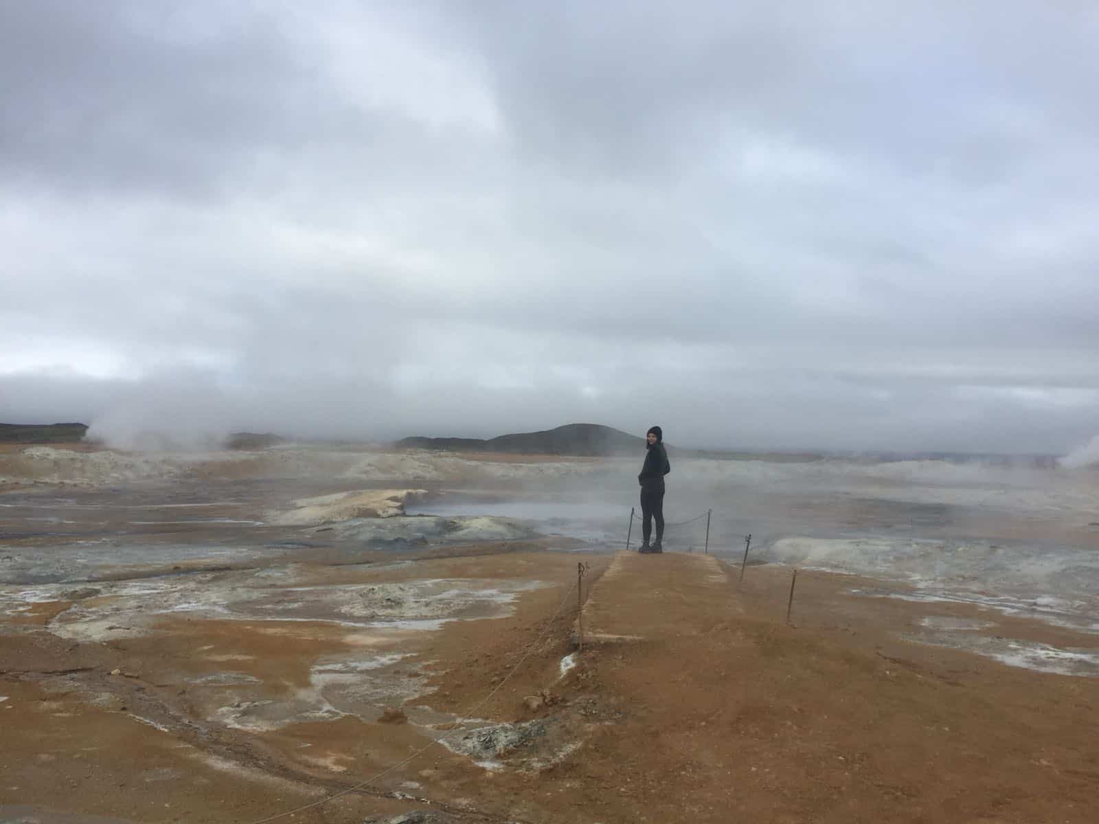On that day our mission was to go all the way to Lake Mývatn, a five hour long beautiful drive from Höfn. The drive along the coast is a memorable route with sights of the ocean, mountains, vast fields and a lot of wild sheep 🙂 Just in the middle of nowhere we couldn’t believe our eyes for the second time that day: we arrived at the hot spring field in Námafjall – no words for a couple of minutes. Hot steam bubbling mud holes surrounded by a dry orange-brownish field – an epic scenery not from this world. Even though the smell is hideous this place is one of a kind!
