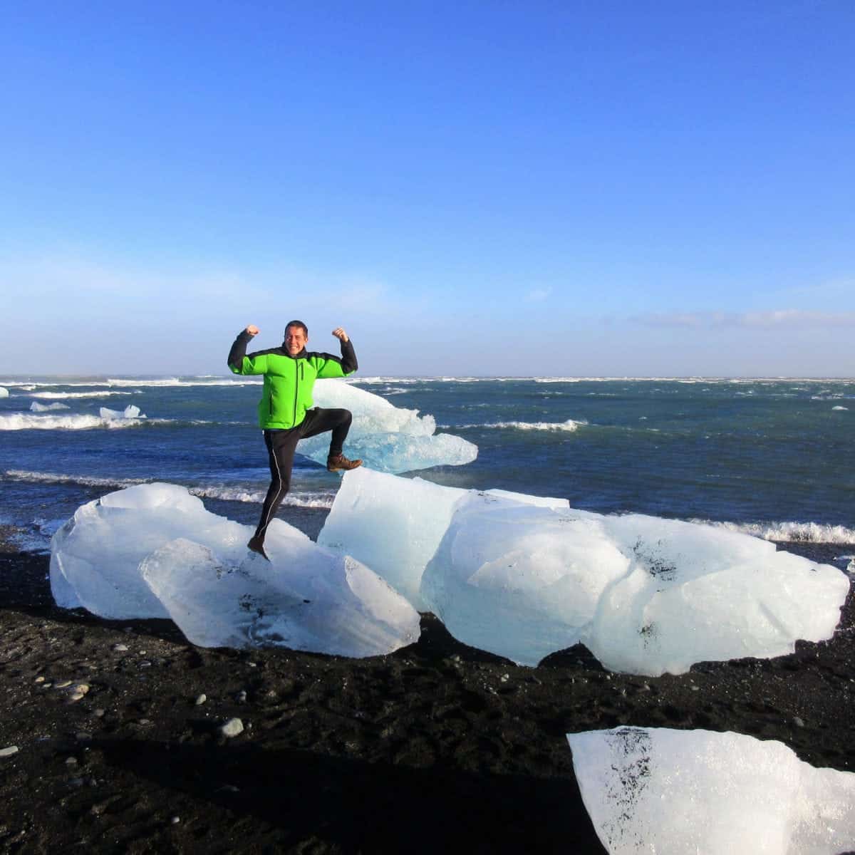We finished the day by visiting Jökulsárlón Glacial Lagoon and Diamond Black Sand Beach. As stated before, it was super windy along the coast line and black sand was flying up into my eyes as we took photos of the icebergs floating out to sea from the glacier. It was very picturesque and we even saw some ducks, seagulls and three seals at 23:00 at night! This midnight sun is allowing us to use our time wisely and pack in as much as possible during our short time here. Tomorrow will involve more snow and ice as we hike into ice caves beneath a non-active volcano in Vik!
