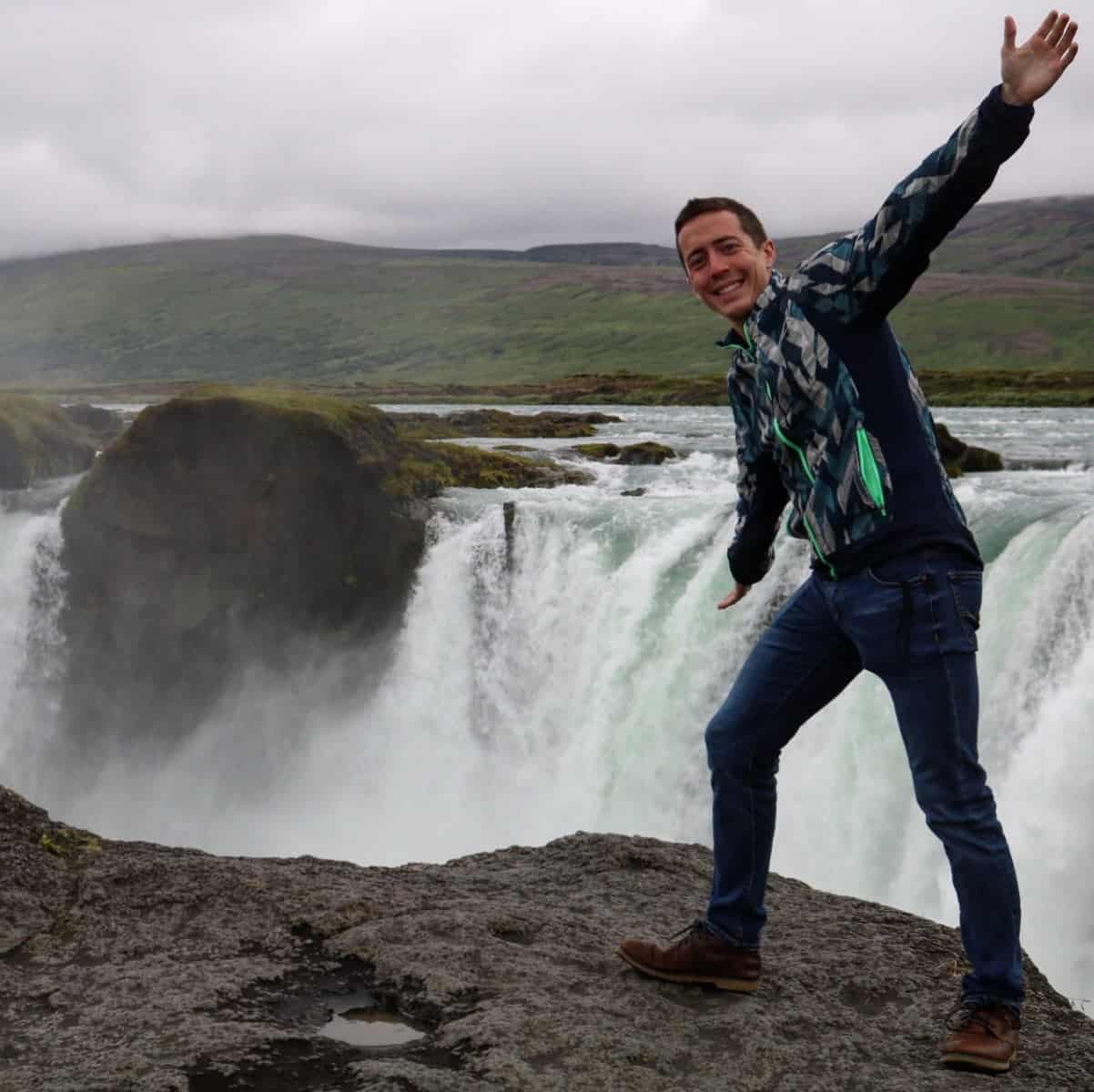 We then checked off visiting a geothermal cave where the Game of Thrones was filmed where I rock-climbed to the top, visiting Goðafoss Waterfall (Waterfall of the Gods), and relaxing in Mývatn Thermal Springs – A natural blue lagoon that is forty-one degrees Celsius (105 degrees Fahrenheit) to end our day.