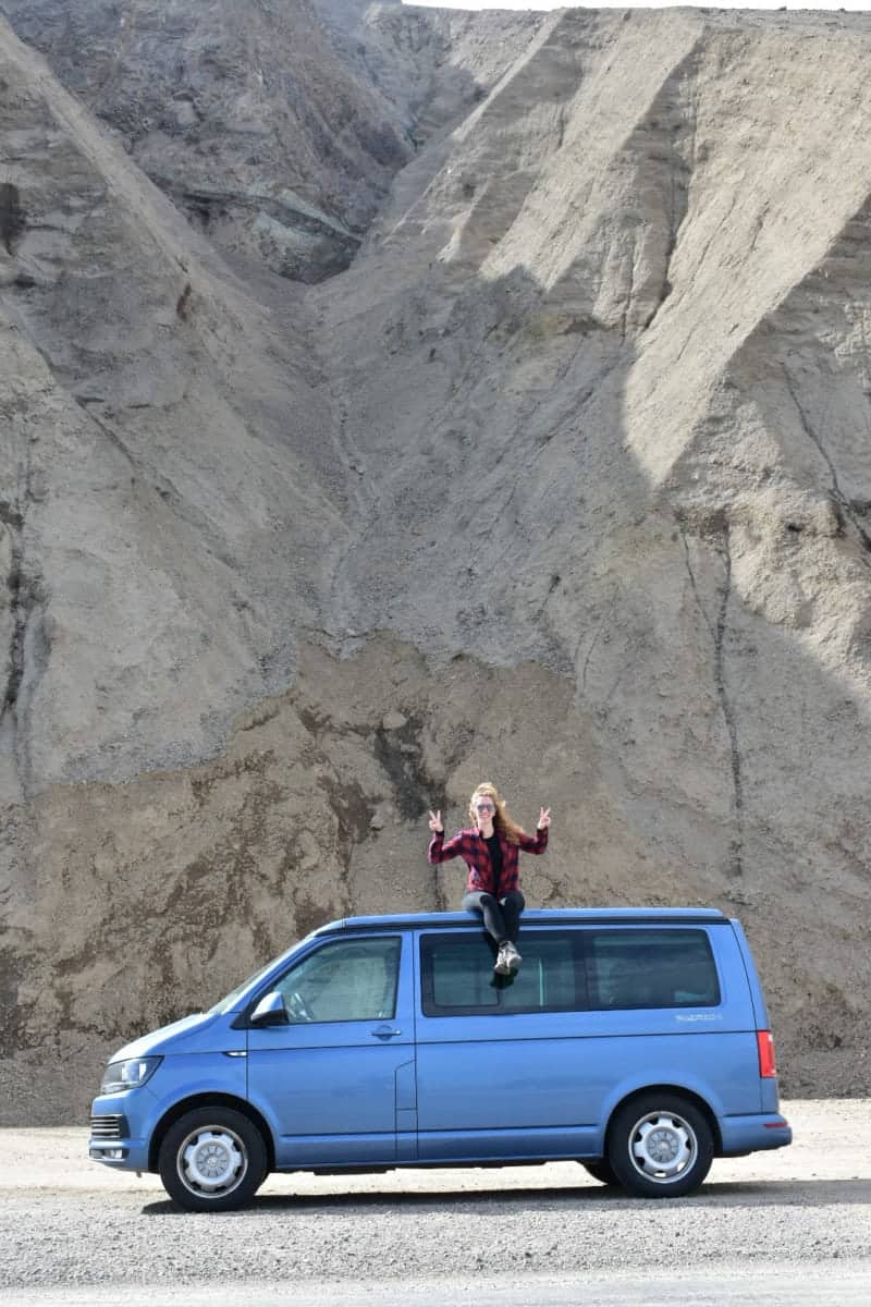 Where’s the sunscreen? We awoke this morning to the sun brightly shining outside our camper van. Thank goodness for the privacy curtains! We had Icelandic Yoghurt for breakfast (which is very thick and creamy) and then we were on our way to explore hot springs, volcanoes, and lava fields. As the designated driver again today, we drove over five and a half hours on the back roads of Iceland searching for adventures. The midnight sun was to our advantage to allow for extra hours of daylight to explore this magnificent country in Frida, our camper van.