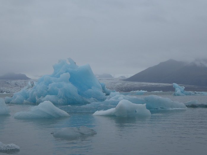 Raining, foggy and cloudy, but we’re ready to explore! Onto of Jökulsárlón lagoon with icebergs. After a bit of exploration we parked Gudrid under the bridge and watched small icebergs breaking and floating downriver from the lagoon to the ocean…seals played and surfaced too! Great viewing while eating lunch in our warm van.