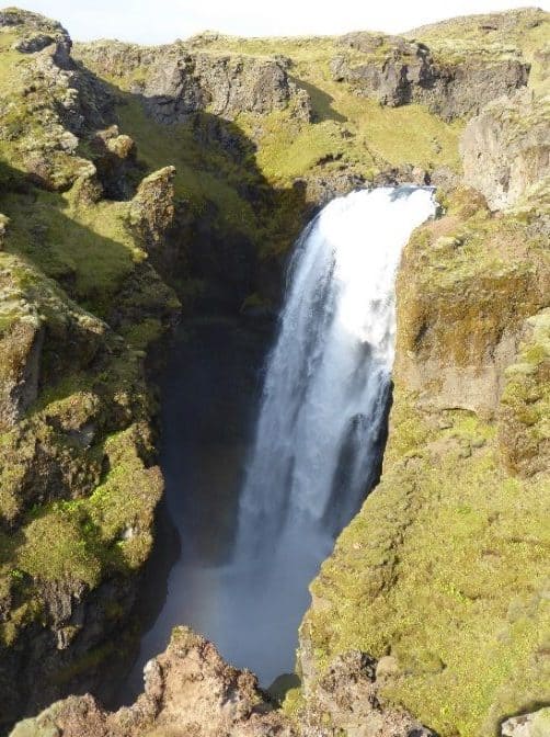 WOW airline is an easy flight to Iceland, but WOW, were we tired after arriving at 4:45 am yesterday and waiting until 3 for our Airbnb. Today was an easy rental pickup at Rent.is – van was ready and waiting, so after a brief orientation we were on the road to Skógar on the south coast. We named the van “Gudrid” for the ancient Icelandic tale of Gudrid the Far Traveler. First plan was to hike the Fimmvörðuháls trail from Skógar to Þórsmörk but we learned buses were no longer running for shuttle so this would be an out and back hike. The Skógafoss campground is just below falls, so we pulled as close as we could get…how nice to fall asleep to the sound of waterfalls! This is our first van experience and it was great to unpack once and have the flexibility to move on if we didn’t like where we were. Walked to the base of the falls after dinner in the darkness – very peaceful to be there alone.