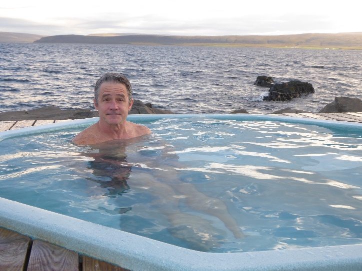 Back along the coast we rounded the peninsula to find the village of Drangsnes. Our destination: their seaside “hot pots” (hot tubs with hot spring water). One was cool, one warm and one hot – we made our way through all three while visiting with other van campers. We stayed for hours! At campsite, the wind was howling but the weather clear so we took a short walk at dark hoping again to see the Aurora. Nothing and it soon clouded over so we returned to the cozy protection of our little van and went to sleep to the sound of the wind.