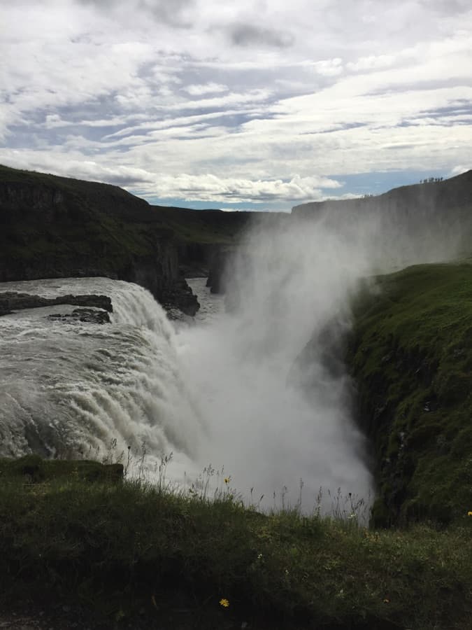 From there, it was a series of driving to various sightseeing destinations along the southwestern part of Iceland. We stopped at Brúarfoss Waterfall to do a mini hike. We then drove over to Gullfoss Waterfall – which looked very similar to a water fall we have back home, Niagara Falls. This waterfall seemed to stretch on for miles though!