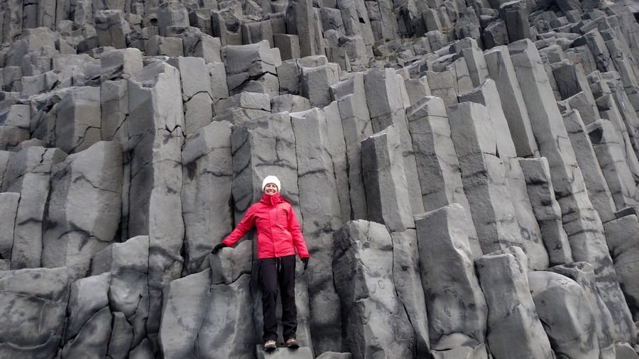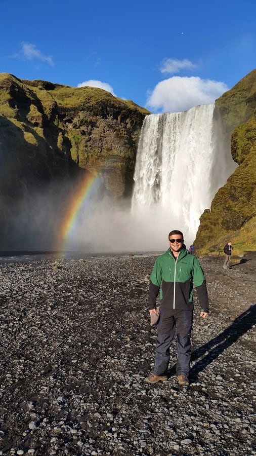 The next morning, all weather had cleared, and we continued south. Our first stop of the day was at Seljalandsfoss and Gljúfrabúi, two incredible waterfalls just a short walk from one another. After getting misted from spray and enjoying a quick walk, we continued on the Ring Road towards Eyjafjallajökull, which erupted in 2010, disrupting much of Europe with its ash in the process. We then made our way to Seljavallalaug pool, one of the oldest pools in Iceland, which is heated by geothermal springs. We enjoyed the warm water and the amazing scenery here and were even able to play in the stream a bit! We captured some of the hot spring water before it hit the cool glacial stream by building a sand retaining wall, making our own personal pool in the midst of the icelandic beauty. After drying off and changing out of our swim suits, we continued onto Skógafoss waterfall, which has an amazing staircase that allows visitors to view the top of the waterfall.