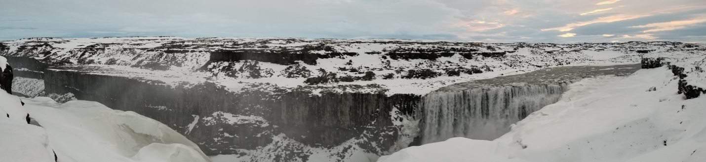As the sun rose on our final long drive day, majestic fjords gave way to a desolate lunar landscape. The main attraction of the day was a sunrise hike at Dettifoss and Selfoss. For most of the morning, it was us and the landscape. Not a human around. Peaceful. Exhilarating. Perfect. As we walked towards what seemed like the end of the Earth, we felt small. Legs weary and wet from the snow covered hike, and surrounded by jaw dropping 360 degree panoramas, the waterfalls finally appeared as the sun peaked above the horizon. Unlike past waterfalls, no amount of cold could freeze Dettifoss as a pristine moment in time. As the falls thundered into the gorge below, we stood silent, mesmerized.