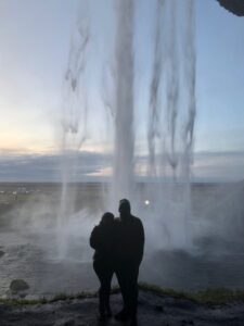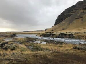 We kept driving, stopping for numerous photos and got to Jökulsárlón, a stunning glacier lagoon. We spotted seals and “calving” which is when ice from icebergs or glaciers break off and fall into the water – a sad but majestic sight and sound! More driving later we got to Fjaðrárgljúfur Canyon – a majestic sight of stunning rock faces with clear, icy blue/green water snaking through it as far as the eye could see. There is an 8km track that more intrepid travelers can walk, but due to being short on time we were just grateful we got to see any of it at all, before heading off.