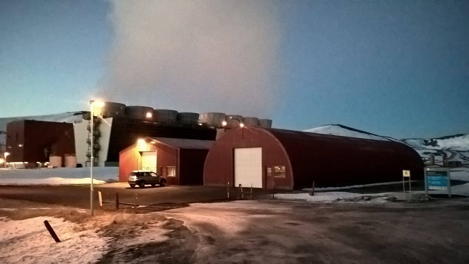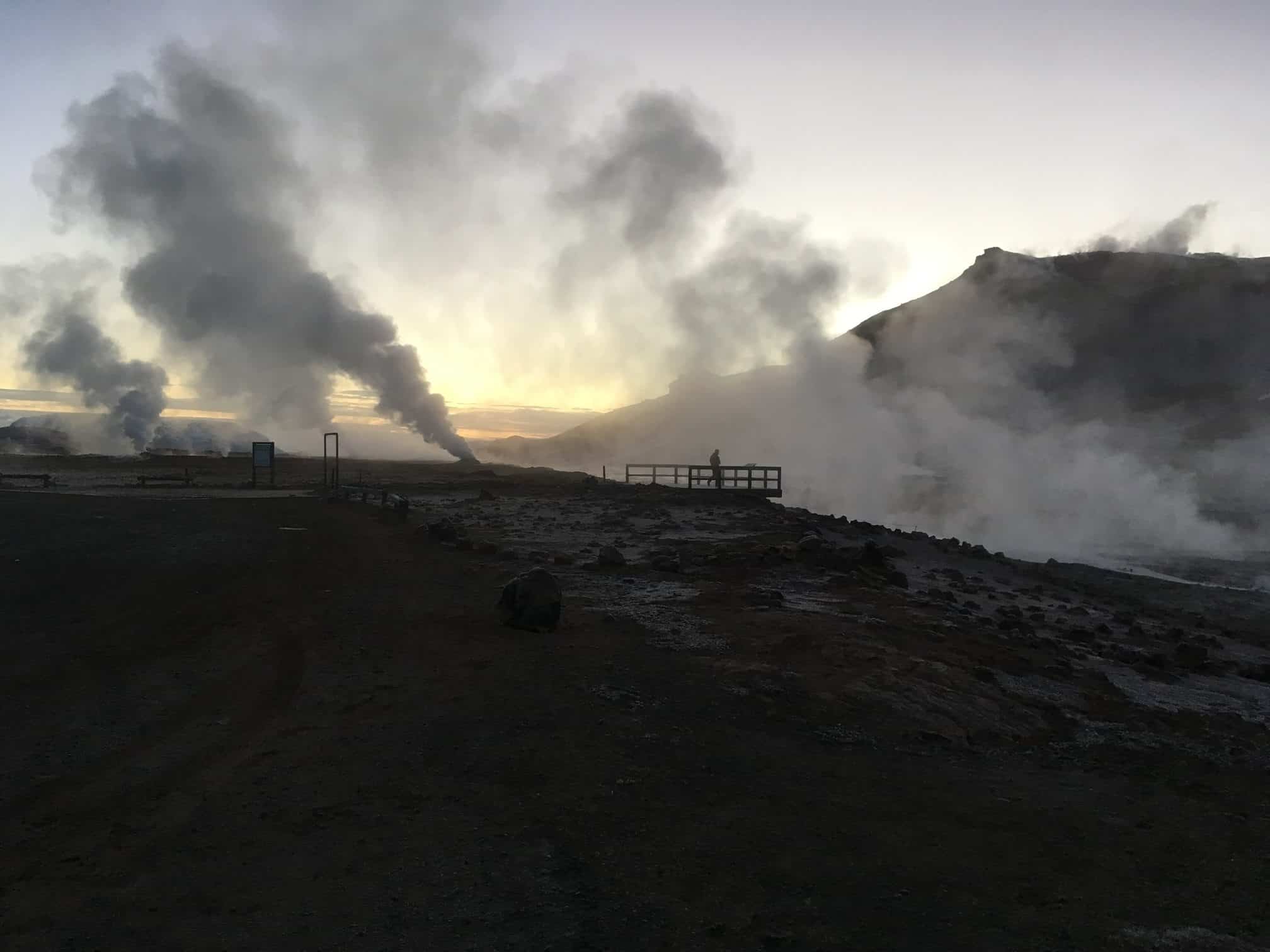After driving for a few hours and enjoying the view, our noses were suddenly attacked by the smell of rotten eggs. Yes indeed, it was time for another geothermal field, Námafjall! This field was massive, with lots of smoke. David noticed another place where there was smoke, behind a mountain. We decided to make a little detour and check it out. It was a geothermal power plant, which was special to see, since we do not have these kind of things in Belgium.
