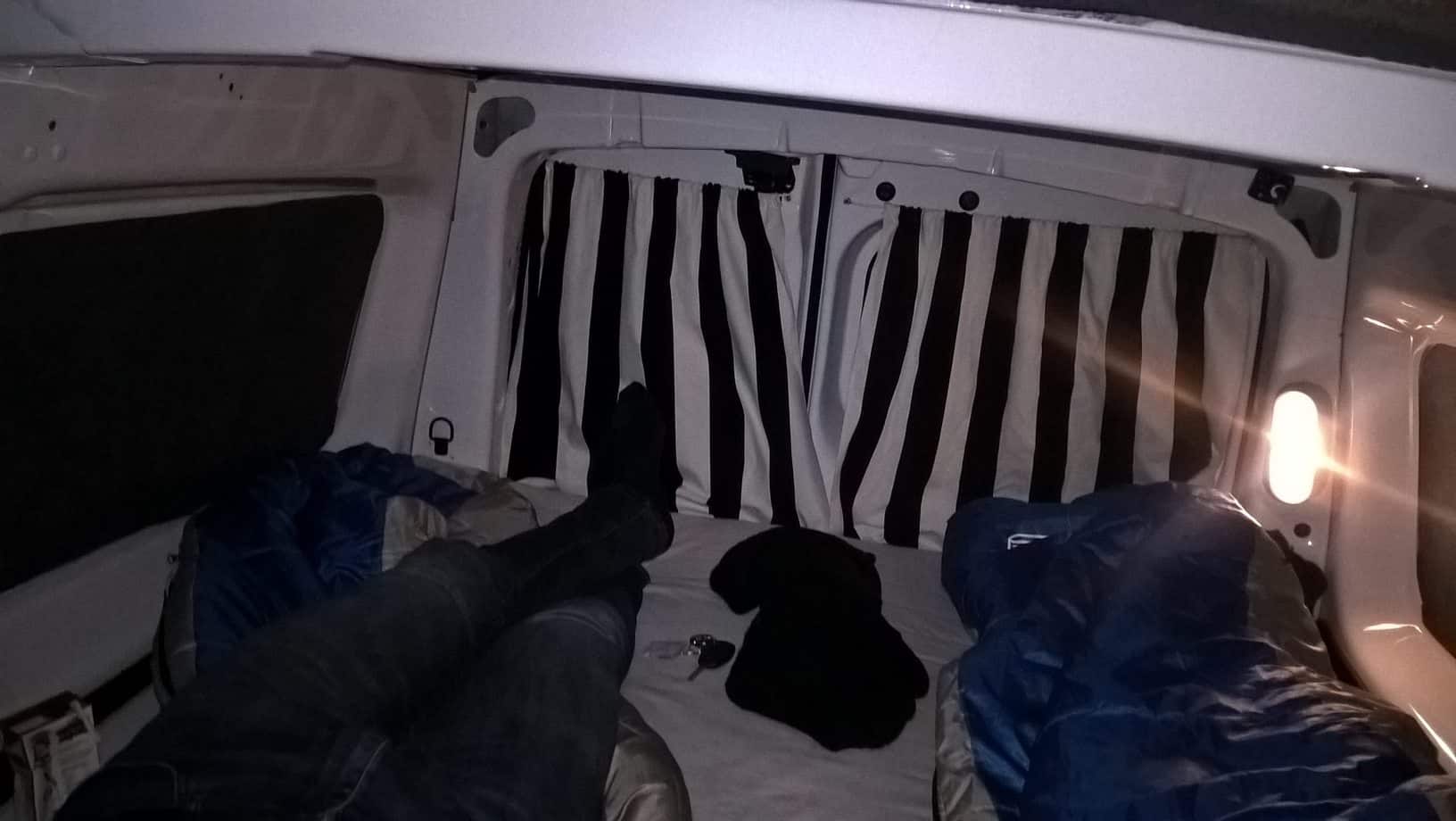 We found ourselves a good parking spot, had some food and tried out our beds and sleeping bags in the back of the van for the first time. Since both of us measure little over 6 feet we were a little weary of the fact that we’d be able to stretch ourselves completely, but to our big surprise and joy we could! How awesome was that!