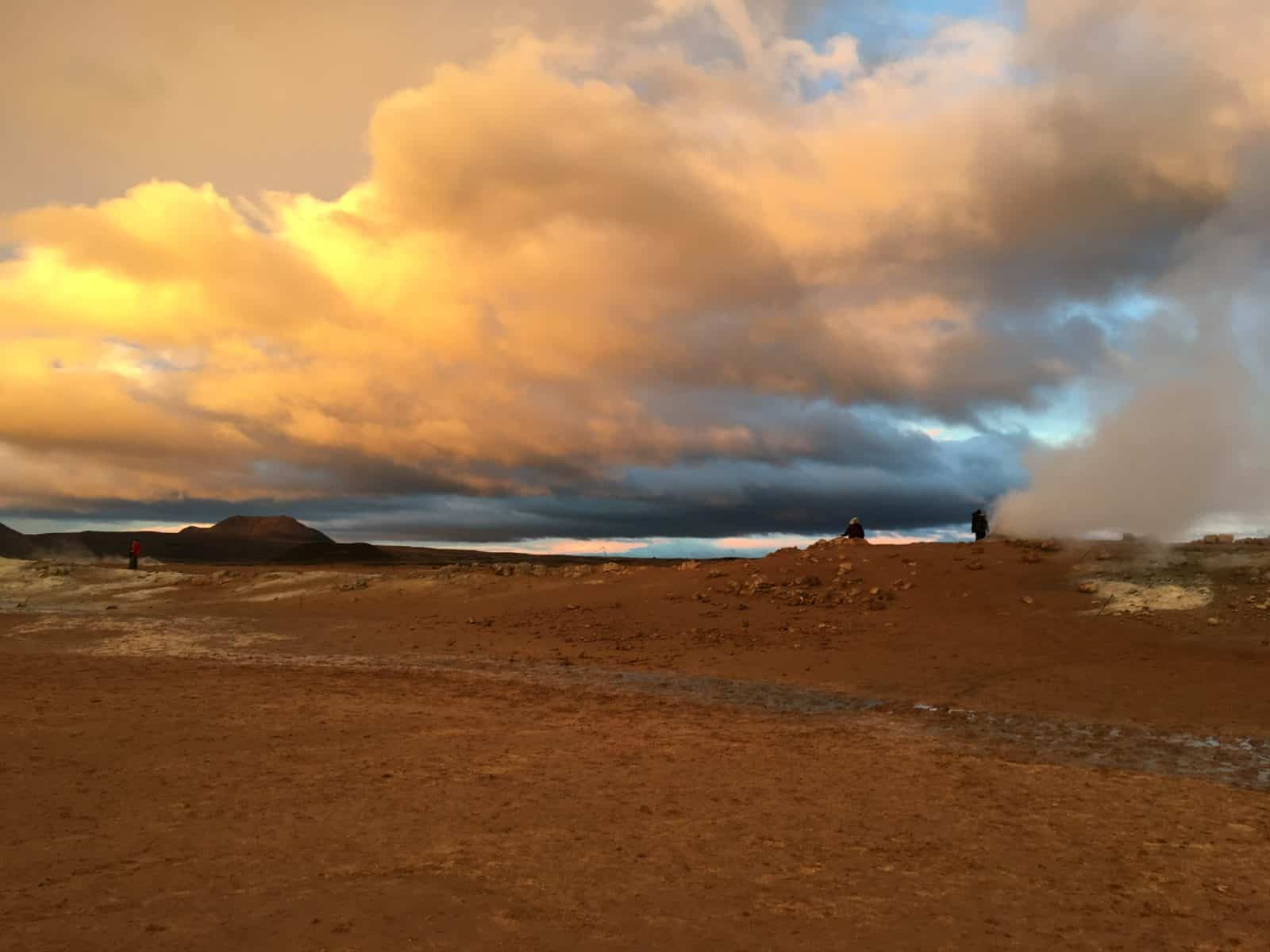 Aside from our introductory night in Vik, where else did we go and what else made an impression on us? It was all a blur of beauty and discovery. Never a dull landscapes. Jaw-dropping views and finds. Few trees, but marvelous undulating rocks, sheep, wind-whipped horses, charming red roofed churches, marshmallow fields, rainbows, waterfalls & black sand beaches. We particularly enjoyed the Mývatn area. The geothermal region (Skútustaðahreppur) is hauntingly beautiful, especially at sunset and we had been told to skip the crowded Blue Lagoon and go instead to the Mývatn Baths .