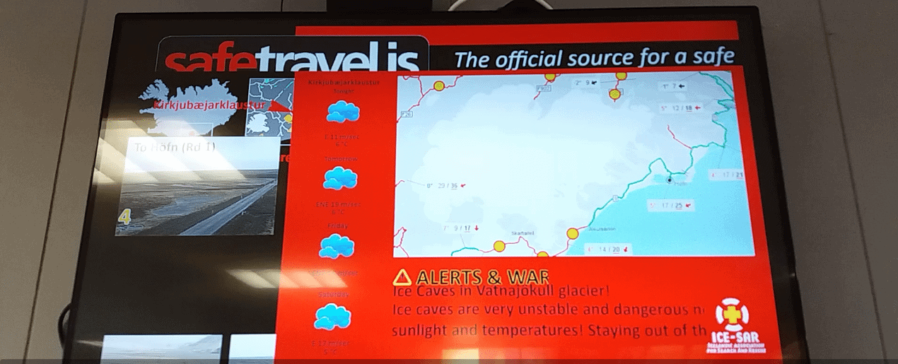 Wind was strong, but nothing could stop us and our camper. Not until Kirkjubæjarklaustur at least… We passed the village and turned right to Höfn, but the road was CLOSED. We had no idea what it meant. Can they close the road? The wind is so strong? We entered to the restaurant to find the answers for our questions. Inside we met 20 tourists looking at the screen with the red alert. We already knew that we are going to spend more time there.