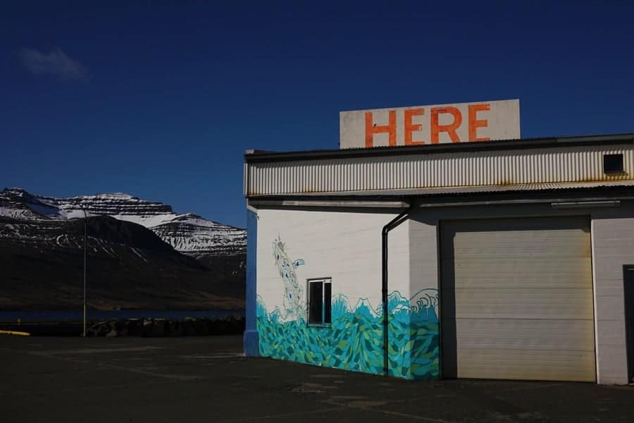 We stopped by an industrial complex to get some snacks for the road and another gem appeared before our eyes. This time human-made. The original, colorful graffiti on the wall of the Fish Factory Creative Center of Stöðvarfjörður looked even better against the backdrop of the barren mountains.