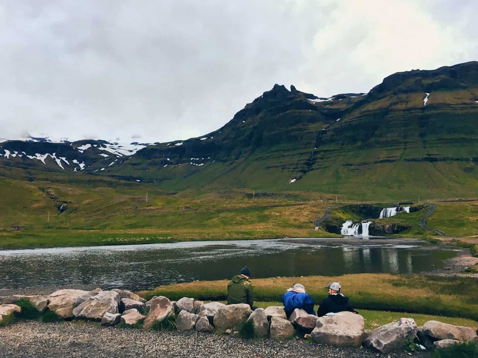 Moving on… it was 3am as we made dinner at Kirkjufellsfoss, and time could have not felt more irrelevant. There we were standing on the edge of a waterfall in the early hours of the morning, making new friends, eating food, taking photos and finding common ground over the joy we experienced while being surrounded by nature. We sat and watched the sun rise as wisps of soft pink appeared in the clouds behind Mt. Kirkjufell.