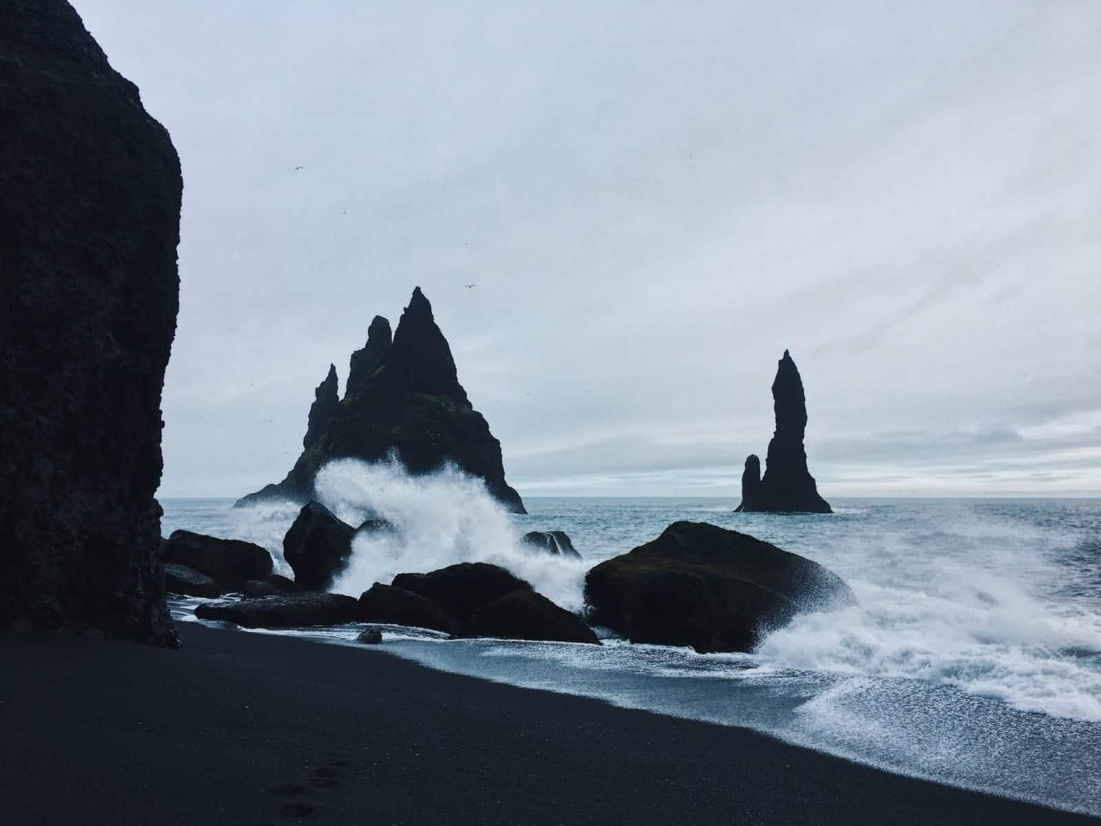 I will have to be honest and say that the Southern region of Iceland absolutely blew my mind and I now know why so many people just go to the most famous landmarks in the South. One of my most favourite locations we visited was Reynisfjara beach near the village Vík í Mýrdal, which is famously known for its’ stark black shoreline. Immediately as we stepped onto the black beach, my heart was thrown into a shrill of excitement as I watched the foamy white waves crash onto the deep black floor and recede until a larger swell overtook the previous shoreline. This place made me feel as if I had stepped into a world that could only be designed by imagination in a story book.