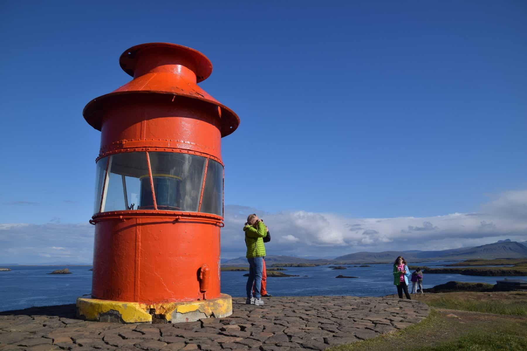 Now we had to make it back all the way through the fjords again, but instead of heading for Reykjavik directly, we wanted to go more west, so we followed the wet gravel roads (if we had parked the car just somewhere, we could have been mistaken for a rock, so dirty was it, but clever as the Icelanders are, they have car washing stations at most of the gas stations, they know they need it. Anyways. to Stykkishólmur, a little fishing village on the front legs, if you see Iceland as a lying sheep, as the Icelanders make you believe. It has a small harbor with an even smaller orange lighthouse on top of some cliffs, that protect the harbor from the really big ocean waves. There has been living sheep on top of that cliffs, now basically tourists live there. I have to admit, Stykkishólmur has a lot of cute cafés, so it’s a nice place to be at. But we had to leave it in the evening, at least make it to Borganes, where we stayed at the small campsite beside the lake, where the caretakers just come around and knock on the door to collect the fee.