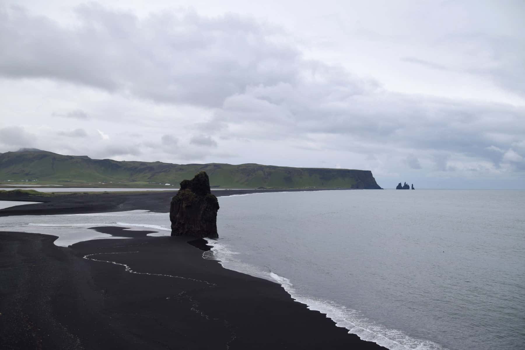 Passing Eyjafjallajökull (what part of AY-uh-fyat-luh-YOE-kuutl-uh didn´t you understand?!?!), which we couldn’t see, our way took us to Seljalandsfoss, where we got a little wet again, because it is a waterfall where you can get behind. That is pretty cool, because you climb up and down the cave behind it an can walk all around the falling stream. That made the next stop Skógafoss, a waterfall as well, almost unattractive. Almost. Ten minutes on the Ring road east of that by Sólheimasandur, you´ll find a parking lot with nothing, that it could lead to, but if you follow a path on foot for around half an hour, you´ll get to the old Douglas Super DC-3. The plane wreck, that went down there 1973 and has barely been touched since. Following road 1 we turned right to Dýrhólaey, the most southernmost tip of Iceland surrounded by black beaches with gigantic rock formations where you, if you´re lucky enough, can spot nesting Puffins. From there it is just a short trip to Vík, the most rainy tip of Iceland where it was, surprise, raining like the earth was supposed to drown, but we still stayed there.