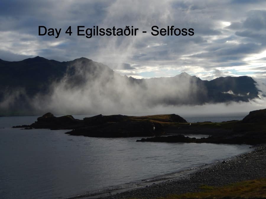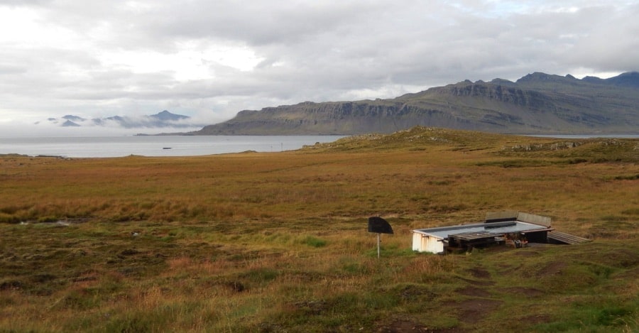 We woke up and the weather seemed to be a bit better than the day before. In the morning we had a look around. We camped at Berufjörður. It looked very mystic how the fog floated over the water. At the shore we discovered an old and dilapidated boat and some swans. It was a scene like from an adventure movie.