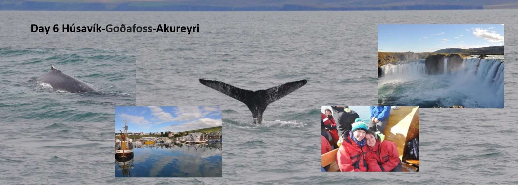 That day we had to get up early. We dressed in all our thick clothes and then drove to the whale watching centre in Húsavík. There we got one more overall that we won´t be cold at all. Then the tour started. We were very excited to see some whales. The crew was very kind. Their enthusiasm about whales was transferred on us. One of the crew members even spoke German and gave us some useful tips about Iceland. After one hour of sailing we were far enough away from the coast and the search started. The crew told everybody to have a look around and shout in case there was a whale. Finally, we saw two Humpback whales. They trusted us and came close to the boat. They must have liked us ? so we could admire their impressive size and elegance. On the way back we enjoyed cinnamon buns and hot chocolate.
