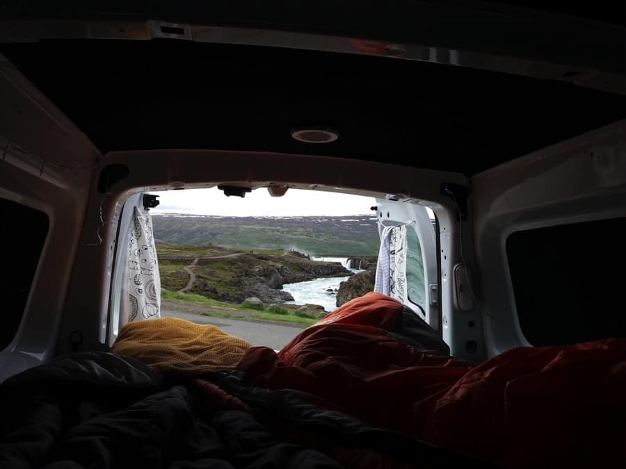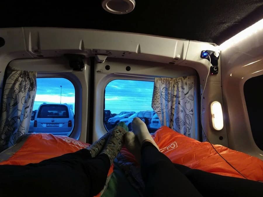 The adventure started at 1:00 am when we rent our fantastic Renault Kangoo from Rent.is in Keflavik Airport .The guys at the rental were very funny and I think we appeared a little bit lost about what we were doing but we were really excited about that new experience. We were very surprised to see that the van had everything we would have needed! The fridge for our beers, the camping gas for our Italian plates and a very relaxing bed where we slept like angels for our first night.