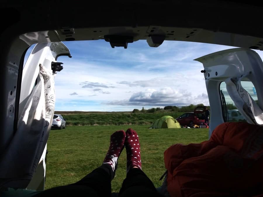 We slept at the Varmaland Campsite, after a fantastic van-cooked dinner with hamburger and Heinz Beans in front of the midnight Icelandic sunset.