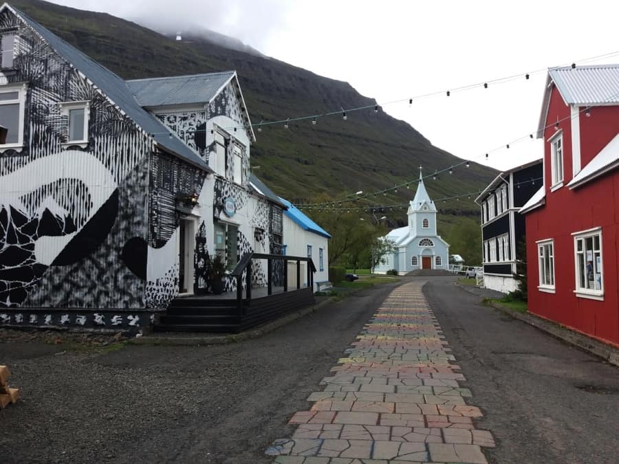 Fortunately we arrived to the fuel station (it was on the top of an uphill) and we could go and reach a fantastic village: Seyðisfjörður. It’s a little, colorful city on the fjord, surrounded by mountains and characterized by some beautiful shops inside the houses of the citizens.