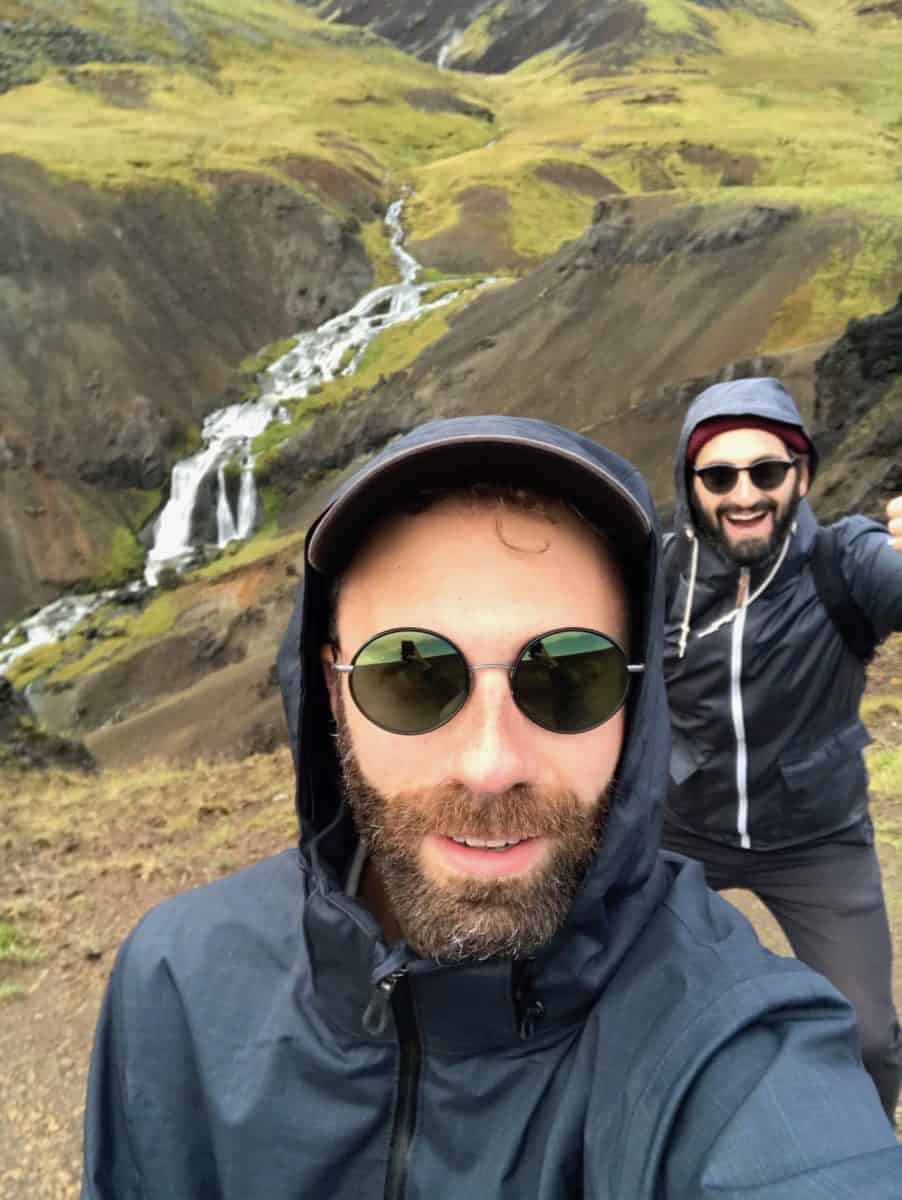First stop: getting our dip on. The Blue Lagoon was fully booked during our trip (call ahead! We did not), so we went to the cooler (hotter) version, the Reykjadalur Hot Spring in the Golden Circle. A 4 km hike in to a steaming bath of spring water and friendly tourists, with some hot mud pools and Lord of the Rings scenery along the way. Pro tip – don’t go into the unmarked 100° Celsius bubbling mud pit, or you’ll burn your feet (“learning by doing” is our unfortunate motto).
