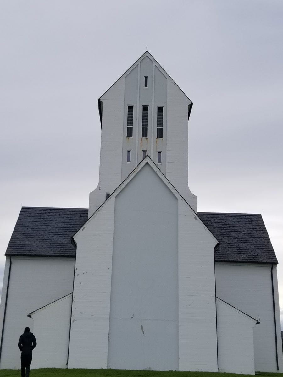 Skálholt Cathedral has the most brilliantly chromatic abstract glasswork we’ve ever seen, though you’d never guess it from this side. It stands on the same site as nine previous churches, dating back to 1056! An awe-inspiring collection of historic books dating back nearly as long is on display in a sod-roofed longhouse just beside it during the day. They charge a small fee to see the old tomes, but between you and us, the doorman was fast asleep…