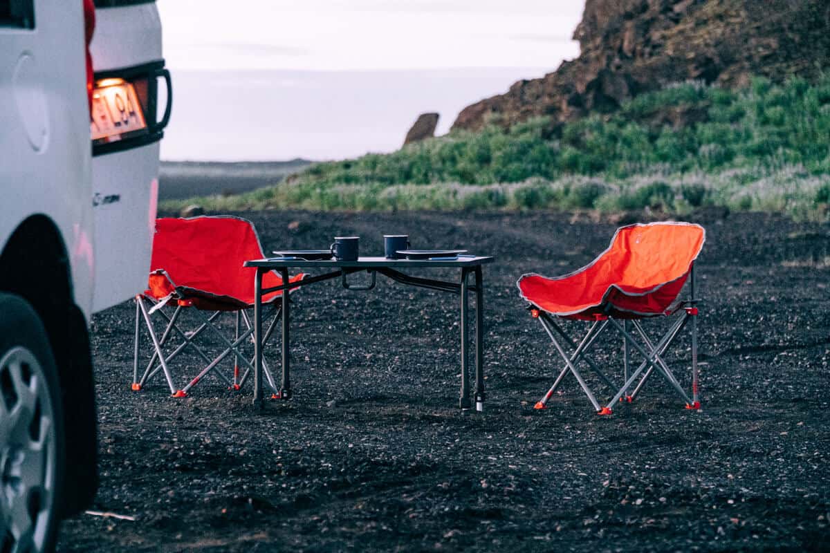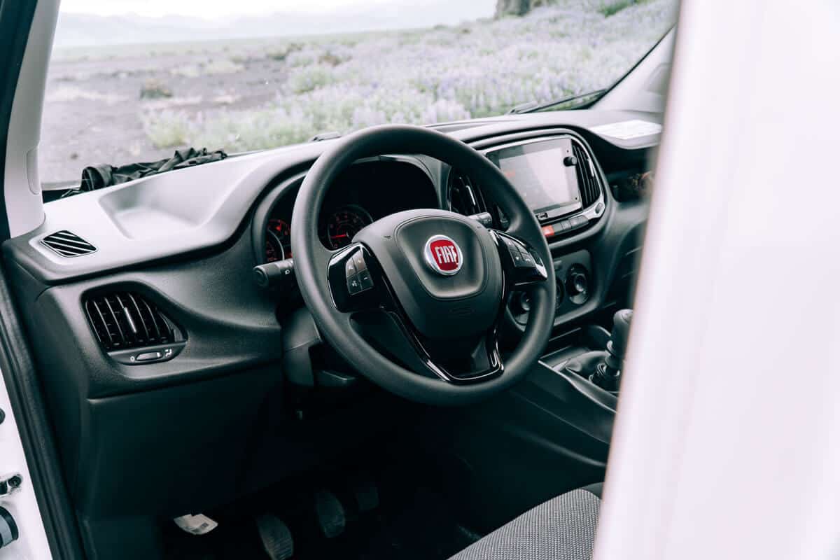 Inside there is a compact storage area, spacious enough for your bags as well as any groceries. The camper comes with all the kitchen essentials you might need, a table, and chairs, allowing you to cook and eat under the stars. The Fiat Doblo Maxi is equipped with 230V electricity which requires the camper to be plugged into campsite electricity. The 230V power allows for the charging of battery-powered devices such as mobiles, computers, or camera equipment! The camper has a portable heater to keep you warm during chilly nights and a portable fridge to keep your food cold. Choose the Fiat Doblo Maxi for your journey through Iceland, a reliable, and budget-friendly companion that promises to make your trip both memorable and affordable.