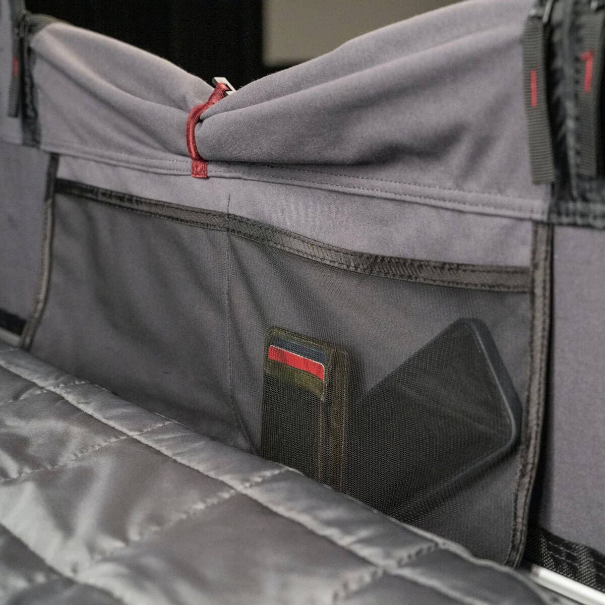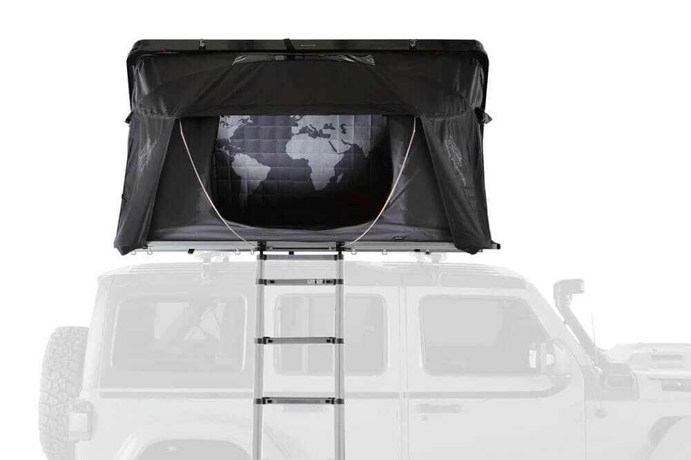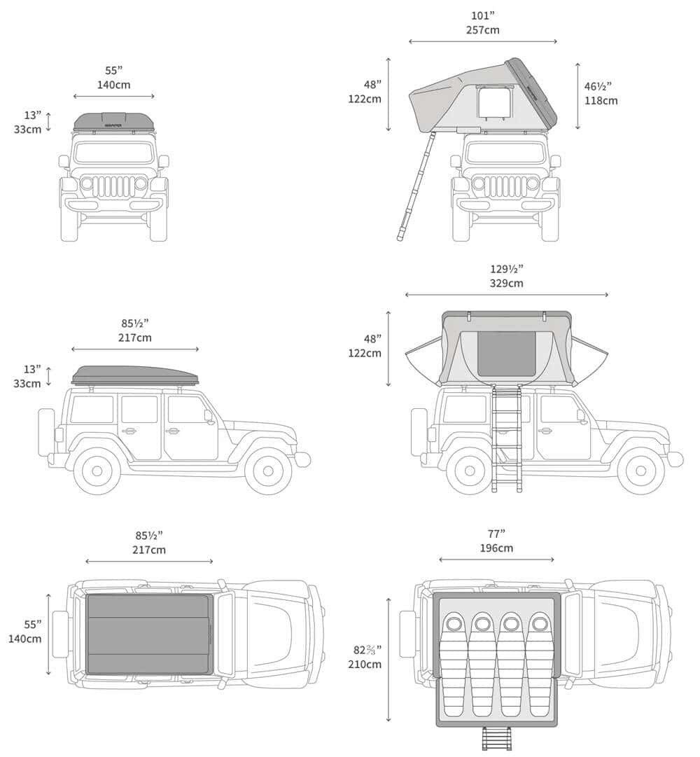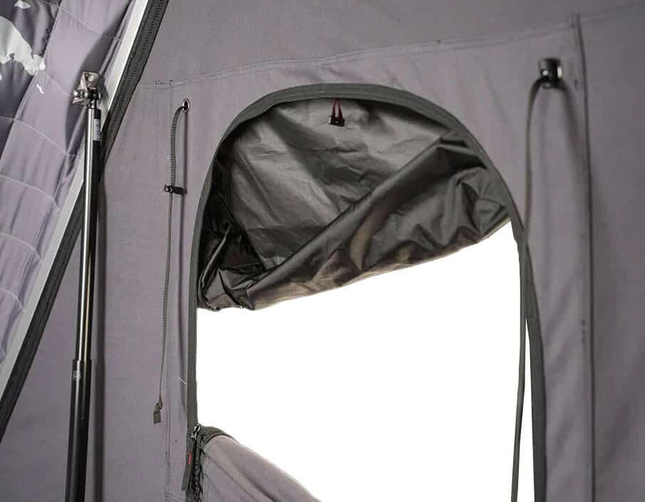 On the roof, you will find a spacious tent fitting four adults. The tent is compact and easy to set up, and when it’s time to resume your journey, it collapses quickly and efficiently. The tent does not come with a heating system so you will need to rely on the weather.
